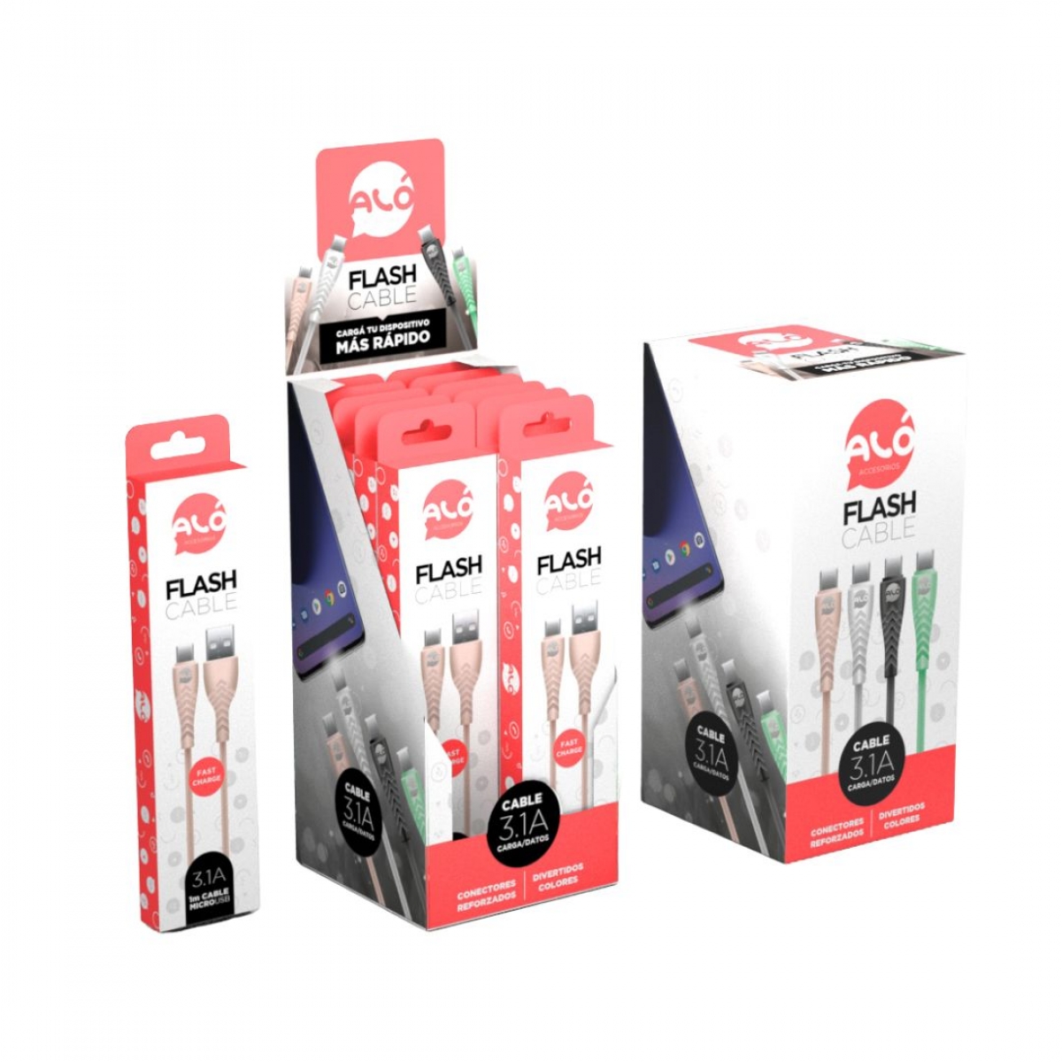 Cables reforzados cubiertos de silicona. Transfiere datos y carga. Soporta carga rápida. Cable de 1 m.